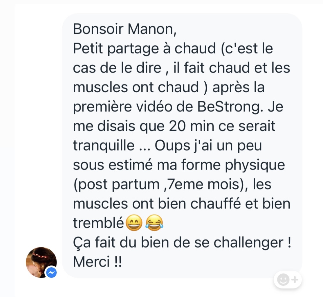 Oui, à partir de 8-10 mois avec feu vert médical. Attention, il s'agit d'un programme intense, donc mieux vaut y aller progressivement, surtout en postpartum. Si tu es plus tôt débutante, commence par un programme de bases comme Spécial Ventre Plat par exemple (respiration, périnée), puis reviens vers Be Strong.