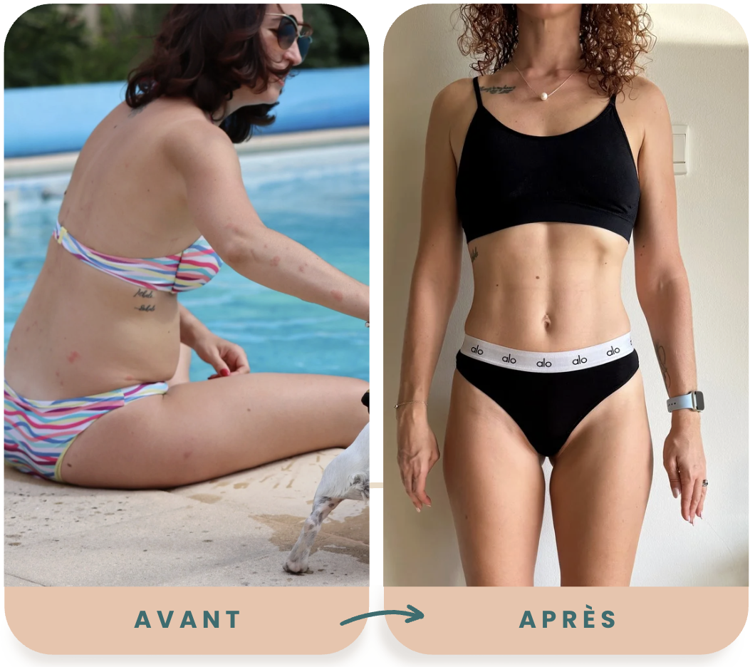 Depuis 2 ans, j’accompagne des milliers de femmes à transformer leur rapport au corps, à retrouver confiance et bien-être — sans jamais passer des heures à s’entraîner.