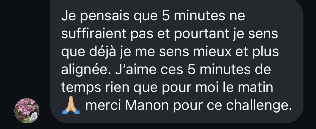 Pendant 5 jours, tu vas t’offrir 5 minutes rien que pour toi chaque jour — pour bouger, respirer, relâcher la pression et alléger ta charge mentale. Tu commences maintenant ?