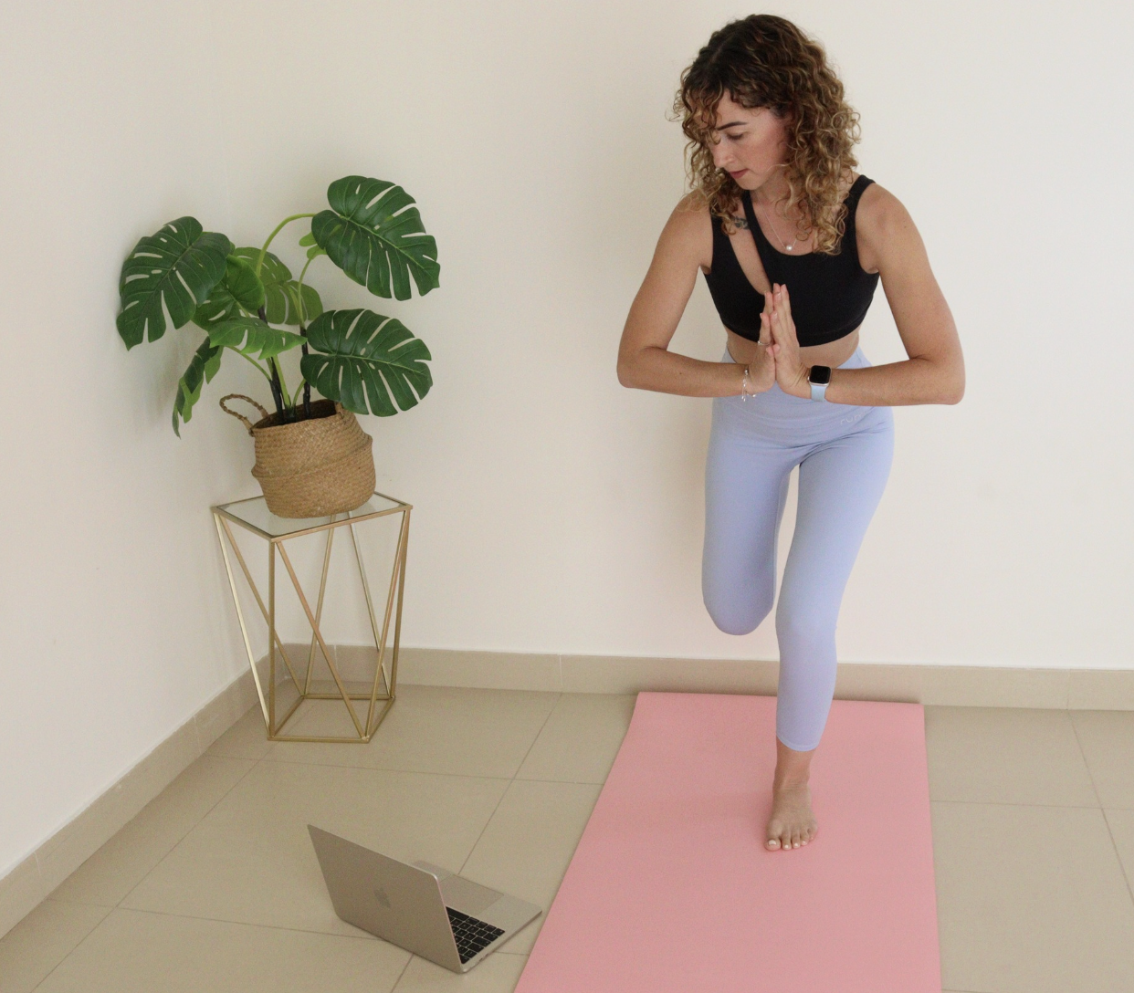Tu auras besoin de ton tapis de yoga (antidérapant) ou de chaussettes antidérapantes, d'un mur plat, d'un coussin ou d'une couverture, du ballon de grossesse (optionnel).