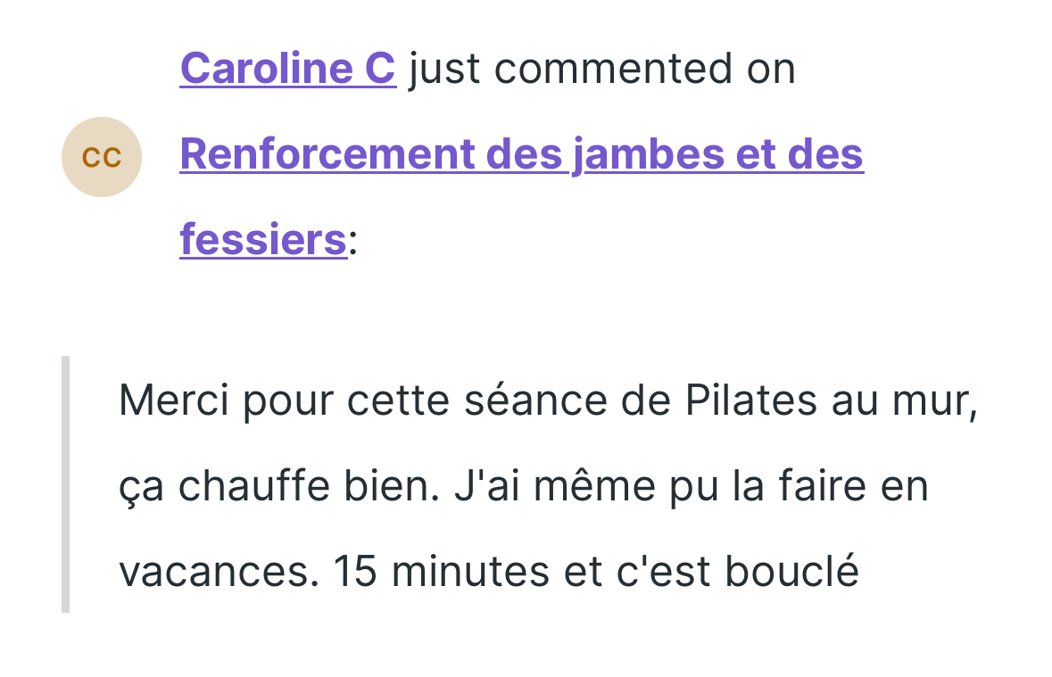 ✔️ Tu veux des séances rapides (15 min) que tu peux faire chaque jour à la maison.