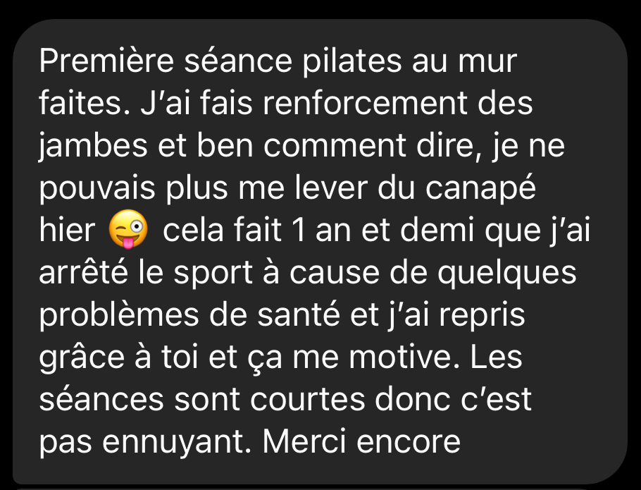 Le programme est également idéal en post-partum : le mur t’offre un excellent soutien pour te réaligner, reprendre confiance dans ton corps et réactiver ta sangle abdominale en douceur.