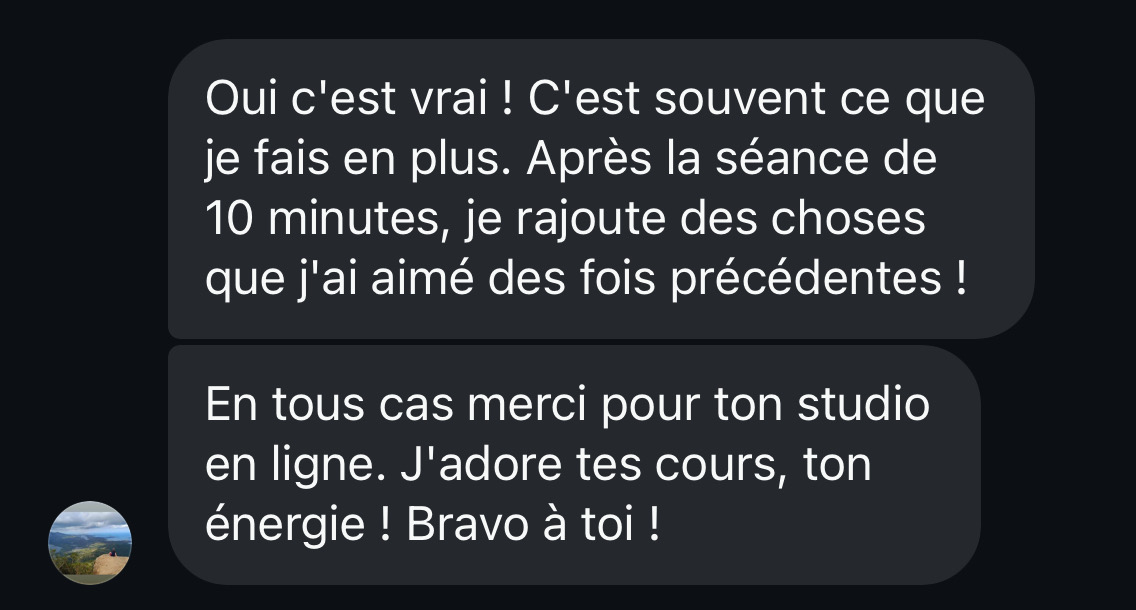 Absolument ✨ Chaque séance dure seulement 10 minutes. Tu peux la placer le matin pour bien démarrer ta journée ou le soir pour relâcher les tensions.
